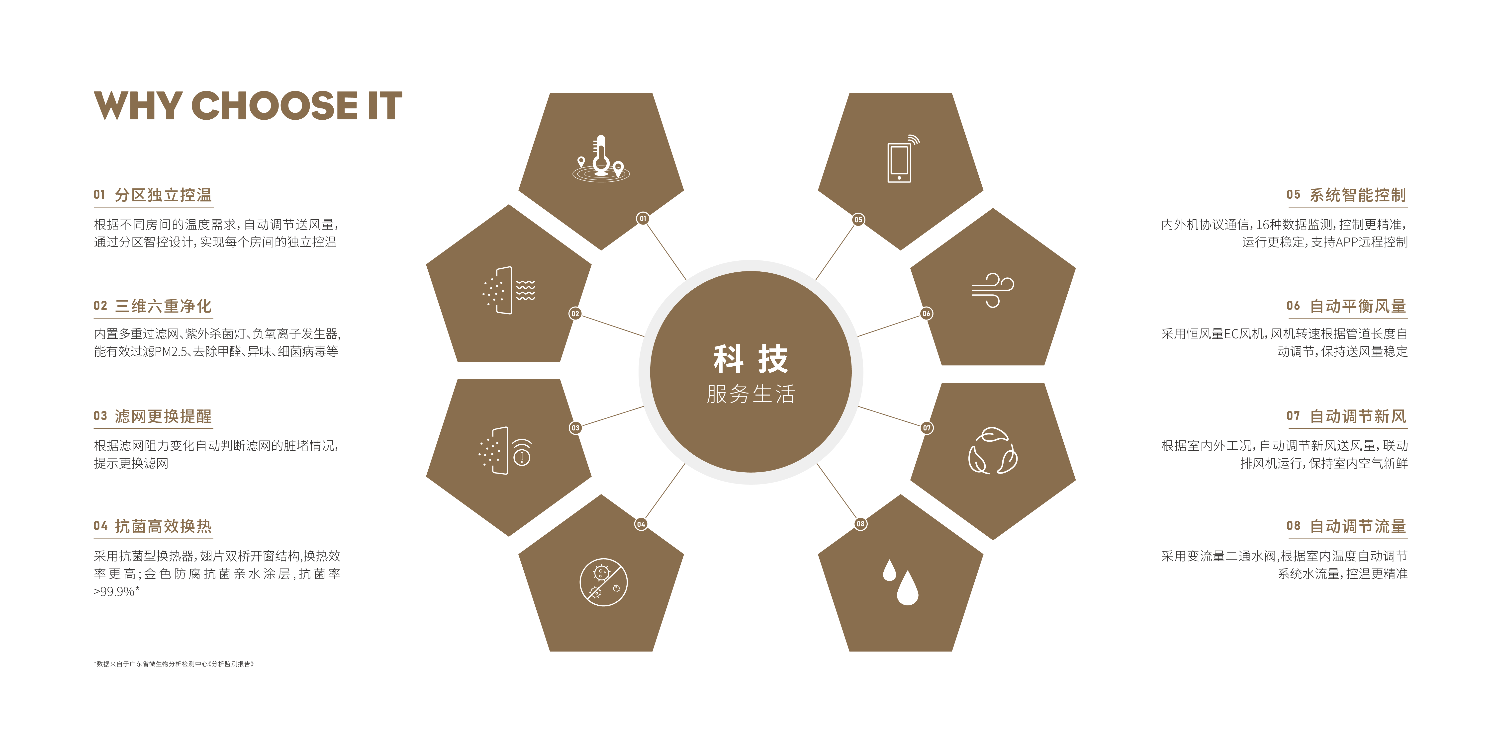 集八大功能于一体,全面升级室内空气品质。风量覆盖400–2000m³/h,落地/吊顶/壁挂三系适配不同户型及安装空间需求。智能调节室内温湿度与含氧量,打造健康呼吸空间。三维六重净化,从物理过滤到生物杀菌,打造森林级洁净空气,一机实现全屋健康呼吸。